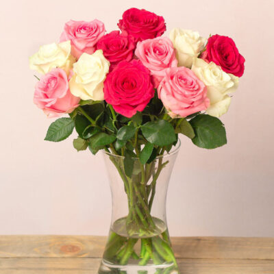 Show them just how much you care with a beautiful selection of 12 Roses in shades of pink and white. Our Roses are selected for their strength and longevity and are packed with care. *This gift is pictured in full bloom. Our roses are delivered in bud so please allow a couple of days for them to fully bloom.